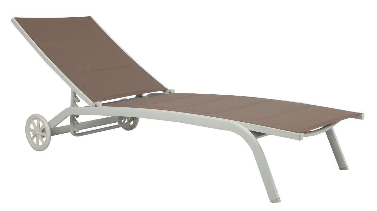 Lettino in alluminio bianco sandy con ruote e textilene tortora 5 posizioni Tubo 40 x 22 Textilene imbottito