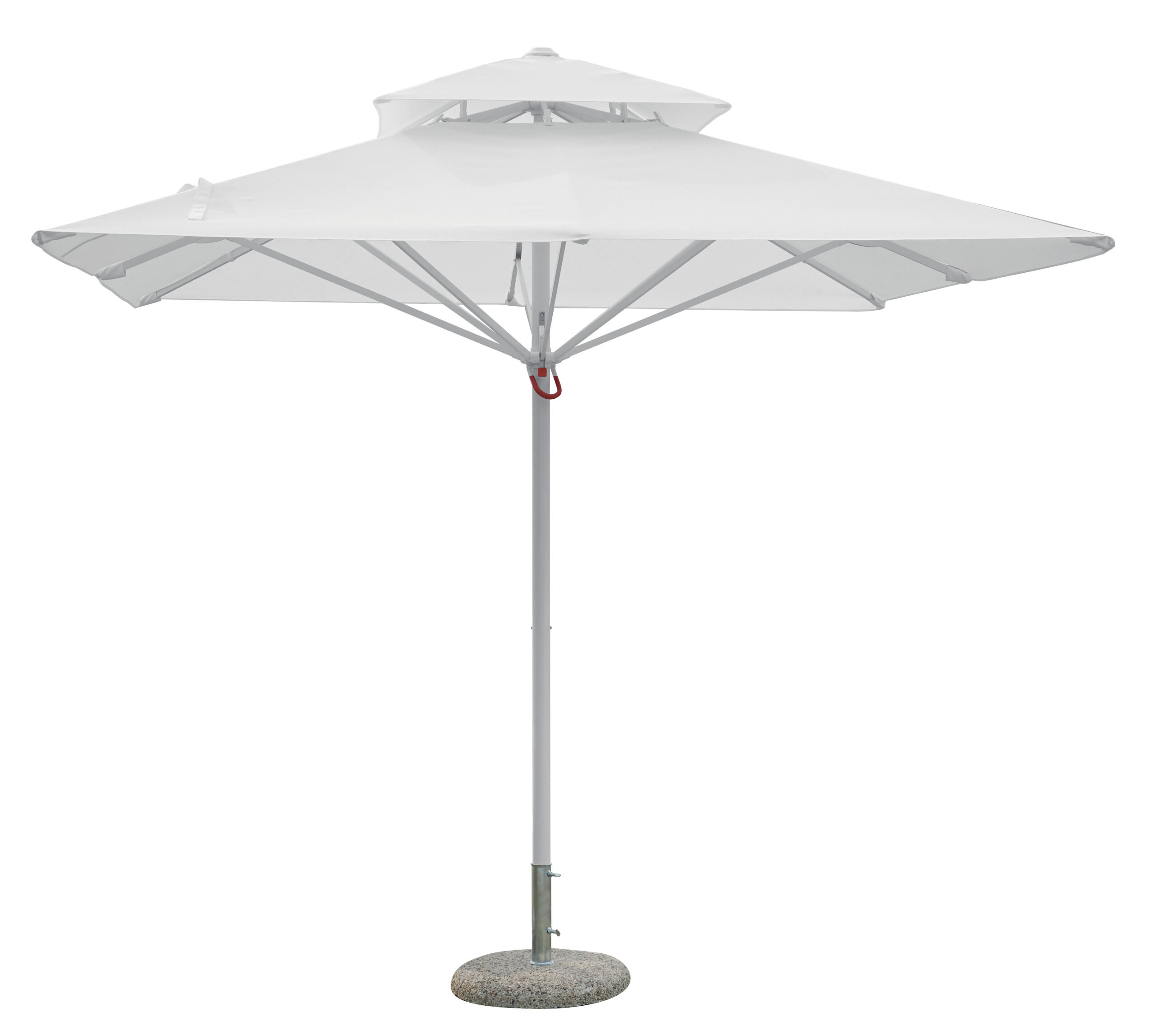 Ombrellone 3×3  – fusto TELESCOPICO palo ∅ 60 mm in alluminio bianco con 8 bacchette 18×28- poliestere resinato 320 gr. bianco – altezza max con base 2,90 mt